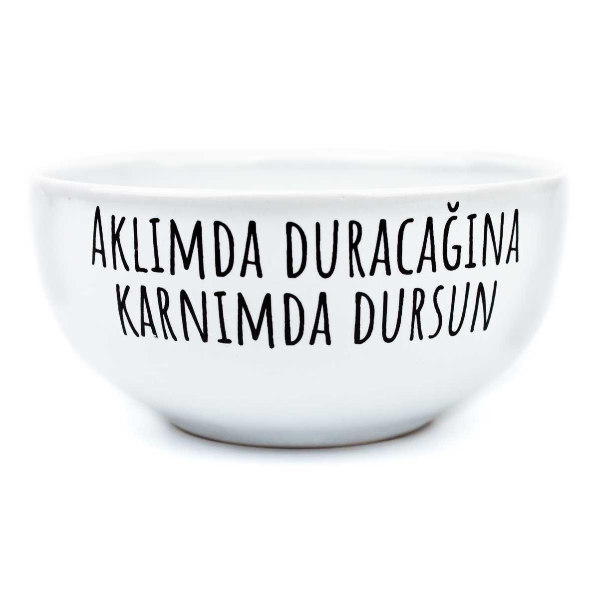 Aklımda Duracağına Karnımda Dursun Beyaz Seramik Kase - Hediye Seramik Kase