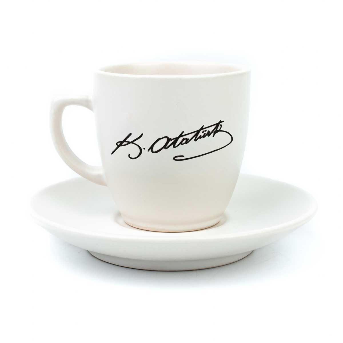 Atatürk İmza Krem Türk Kahvesi Fincanı - Hediye Seramik Türk Kahvesi Fincanı