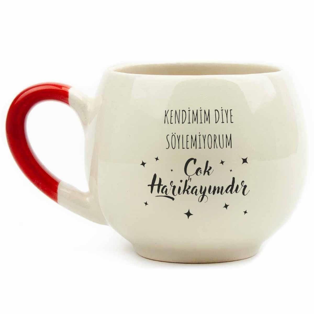 Çok Harikayımdır Krem Parlak Balon Kupa (Kırmızı Kulp) - Hediye Seramik Kupa