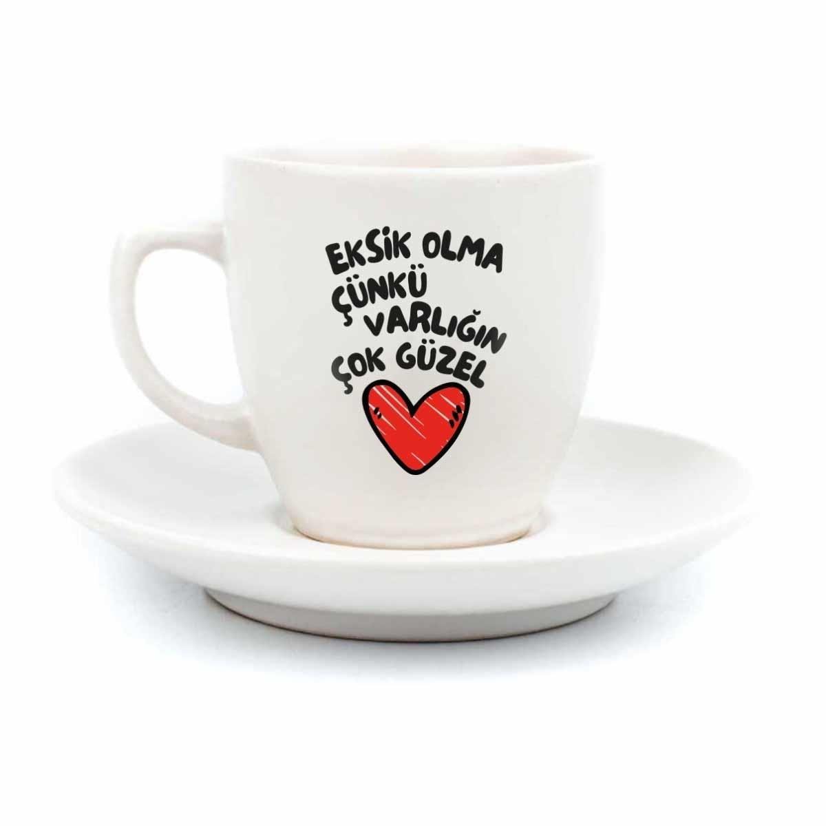 Eksik Olma Çünkü Varlığın Çok Güzel Krem Türk Kahvesi Fincanı - Hediye Seramik Türk Kahvesi Fincanı (TKFKR125)