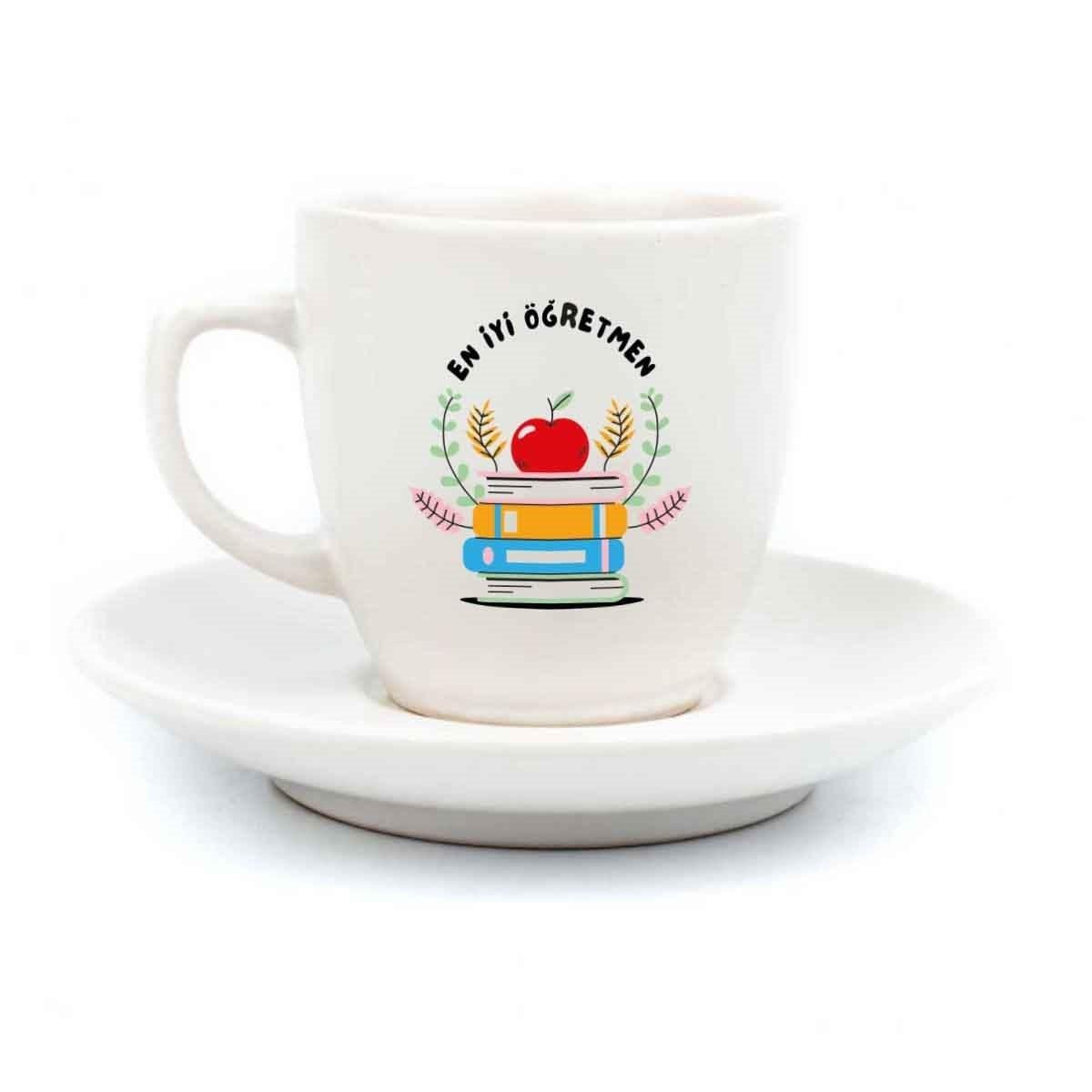 En İyi Öğretmen Krem Türk Kahvesi Fincanı - Hediye Seramik Türk Kahvesi Fincanı