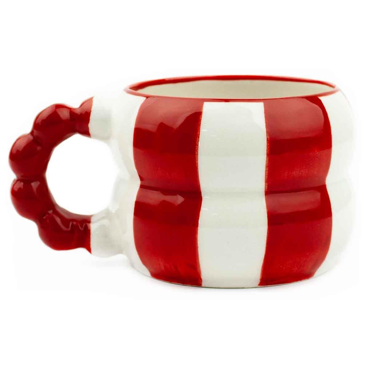 Kırmızı Çizgili El Boyama Kabartma Desen Krem Parlak Harmoni Kupa - El İşçiliği Hediyelik Kupa (KUHAR021)
