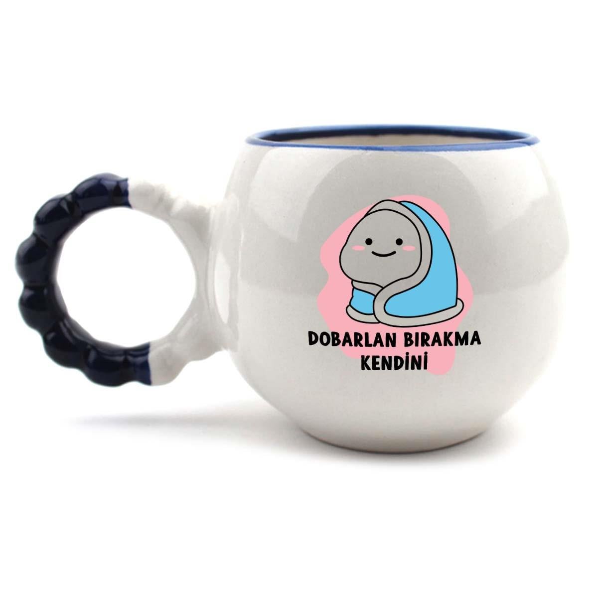 Dobarlan Bırakma Kendini El Yapımı Krem Parlak Puf Kupa - El İşçiliği Hediyelik Kupa Bardak Mug