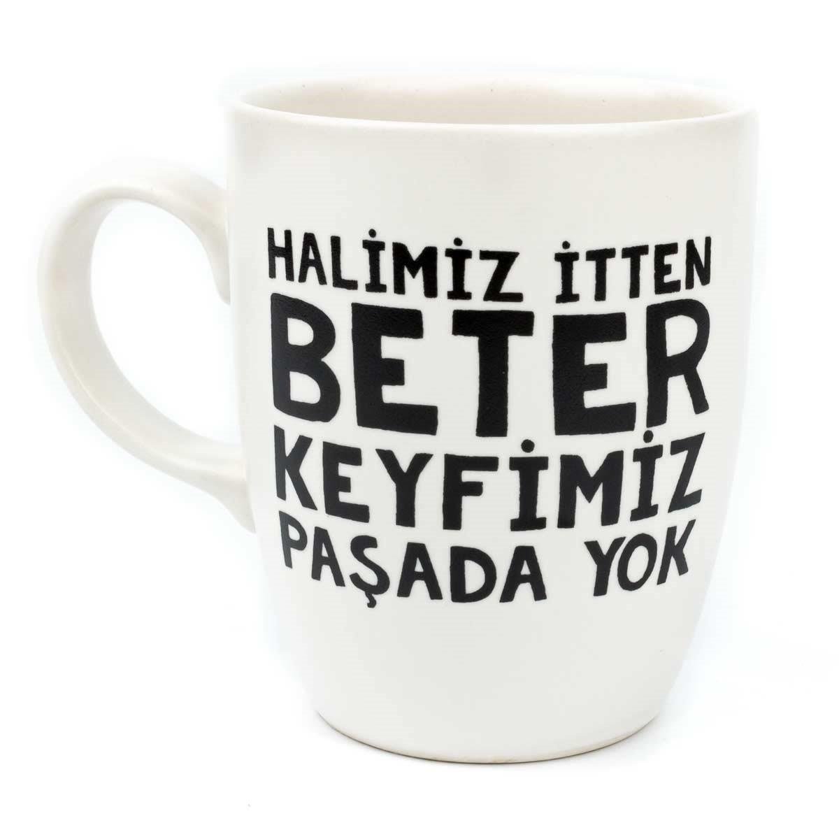 Halimiz İtten Beter Keyfimiz Paşada Yok Krem Oval Kupa - Hediye Seramik Kupa