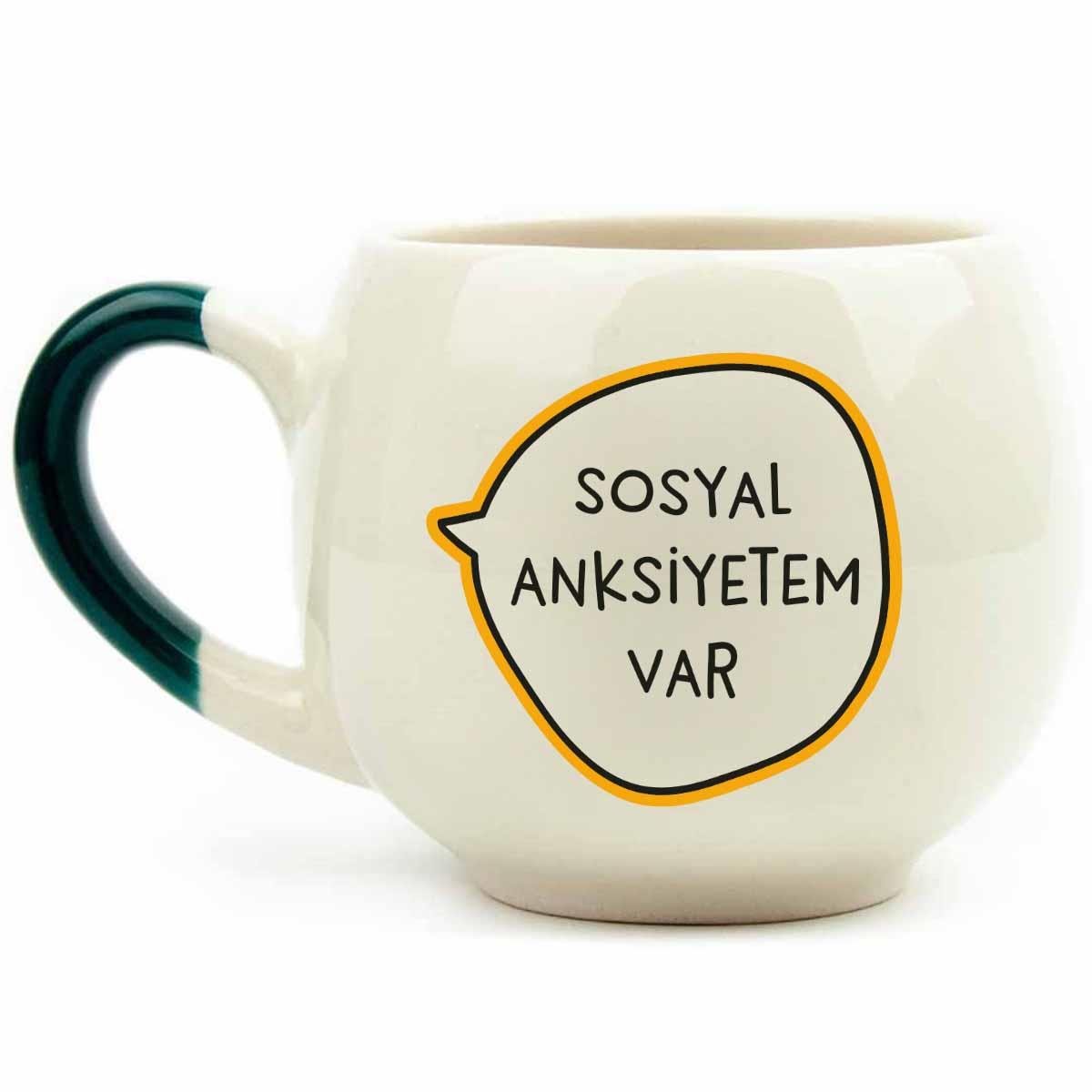 Sosyal Anksiyetem Var Krem Parlak Balon Kupa - Hediye Seramik Kupa (KUBAL188)