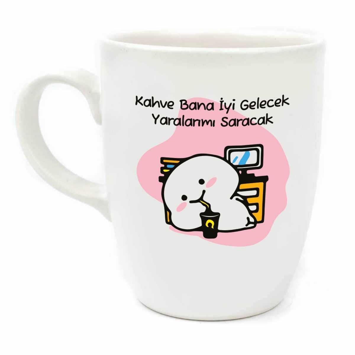 Kahve Bana İyi Gelecek Yaralarımı Saracak Krem Oval Kupa - Hediye Seramik Kupa