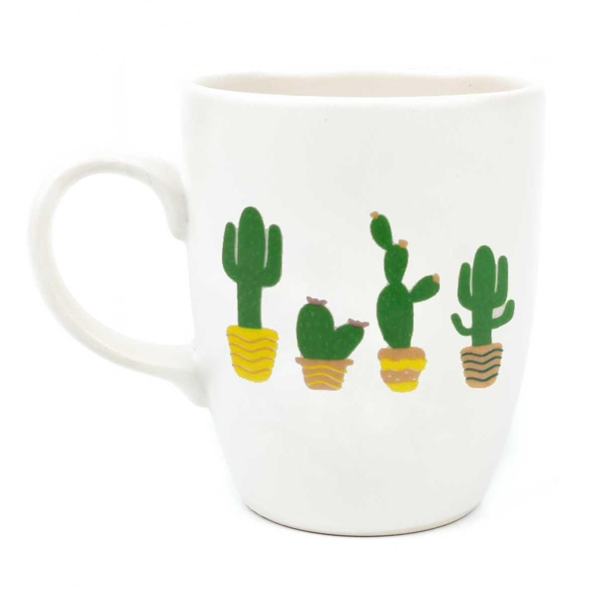 Kaktüsler Krem Oval Kupa - Hediye Seramik Kupa