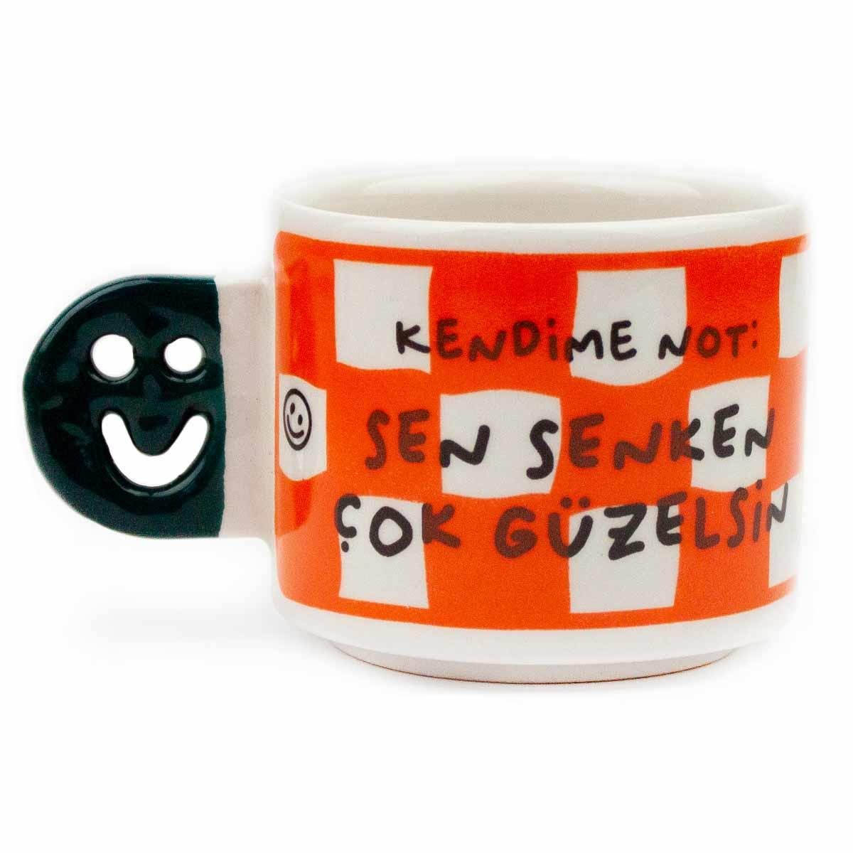 Kendime Not: Sen Senken Çok Güzelsin! El Yapımı Gülen Kulp Kupa - Hediyelik Kupa Fincan Mug