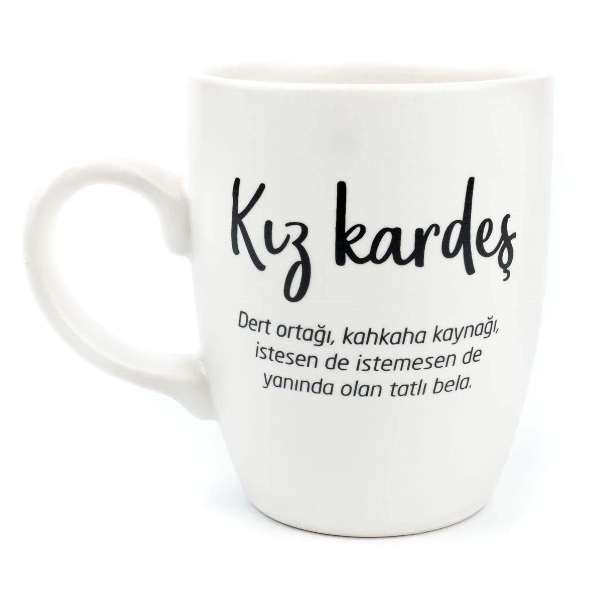 Kız Kardeş Krem Oval Kupa - Hediye Seramik Kupa (KP208)