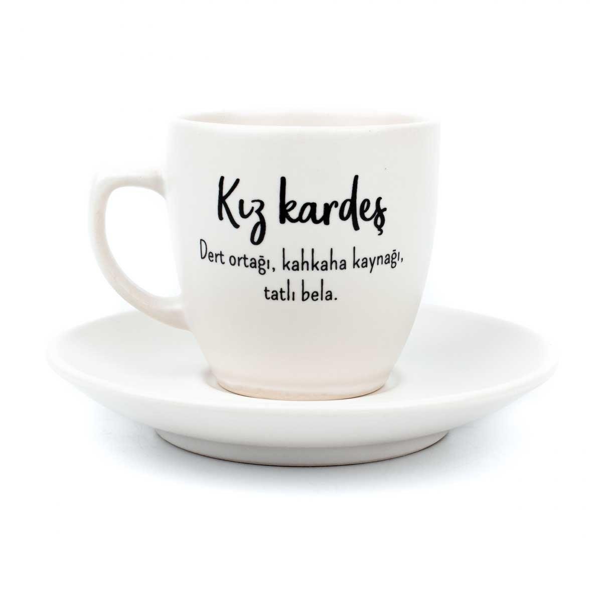 Kız Kardeş Krem Türk Kahvesi Fincanı - Hediye Seramik Türk Kahvesi Fincanı