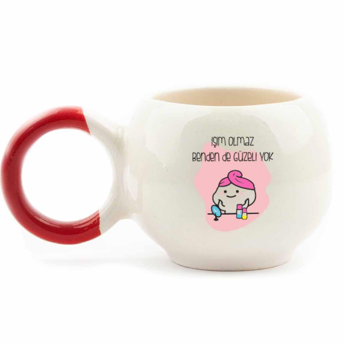 İşim Olmaz Benden De Güzeli Yok El Yapımı Krem Parlak Baloncuk Fincan - Hediye Seramik Fincan (FINBAL05)