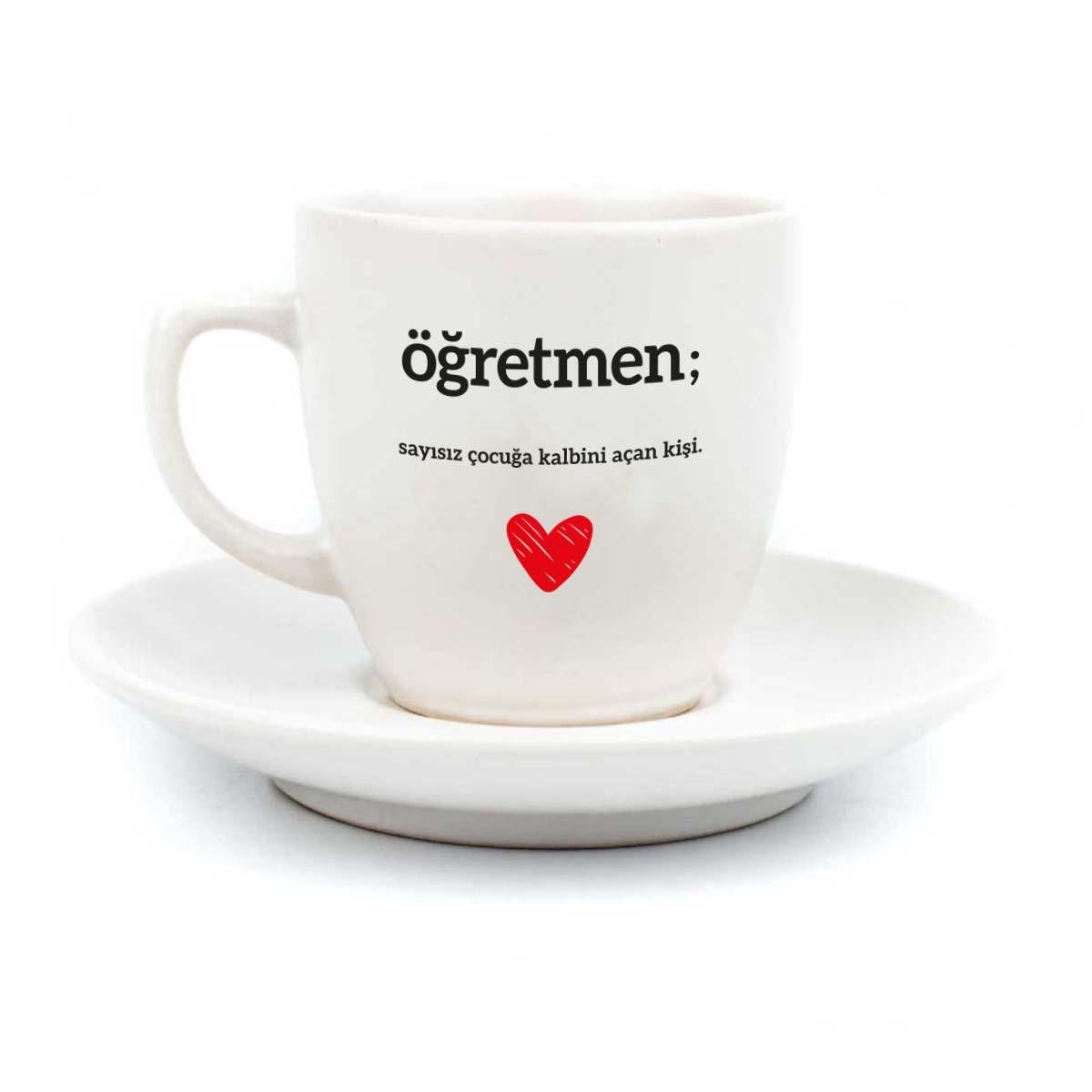 Öğretmen; Sayısız Çocuğa Kalbini Açan Kişi. Krem Türk Kahvesi Fincanı - Hediye Seramik Türk Kahvesi Fincanı (TKFKR164)