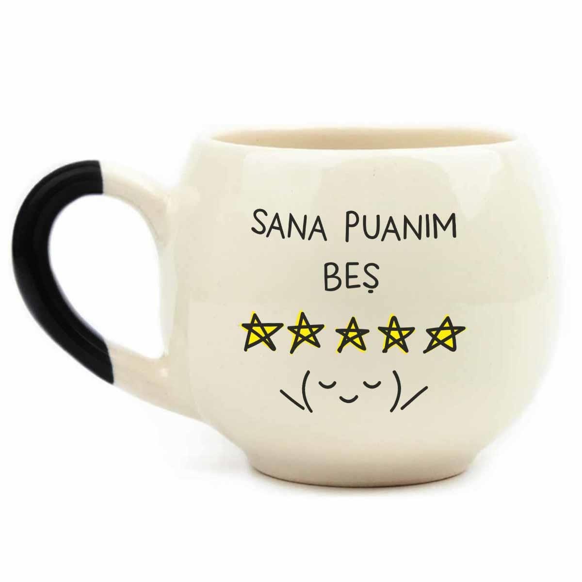 Sana Puanım Beş Krem Parlak Balon Kupa - Hediye Seramik Kupa