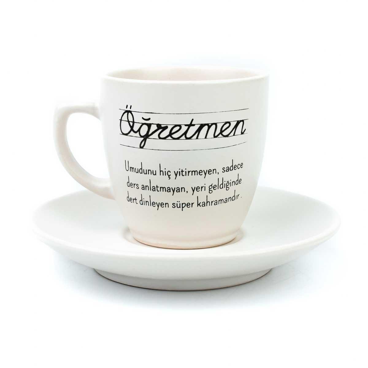 Öğretmen Krem Türk Kahvesi Fincanı - Hediye Seramik Türk Kahvesi Fincanı