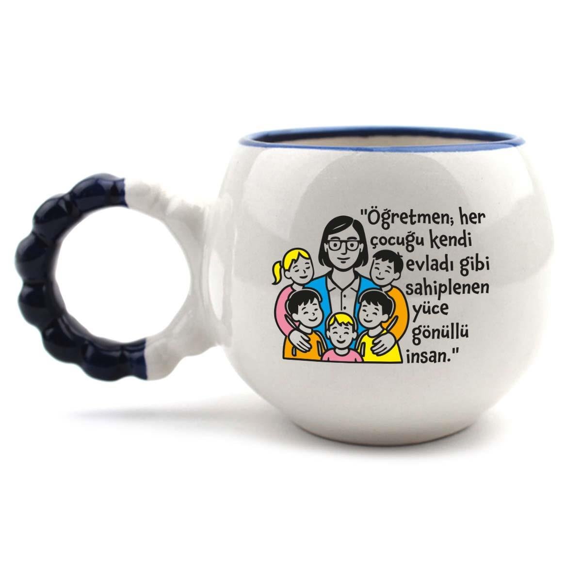 Öğretmen;Her Çocuğu Kendi Evladı Gibi El Yapımı Krem Parlak Puf Kupa - El İşçiliği Hediyelik Kupa Bardak Mug