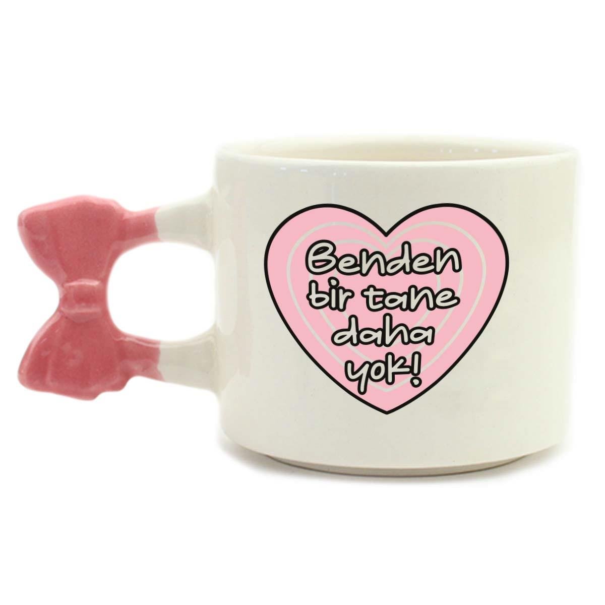 Benden Bir Tane Daha Yok! El Yapımı Krem Parlak Kurdele Kulp Kupa - El İşçiliği Hediyelik Kupa Bardak Mug