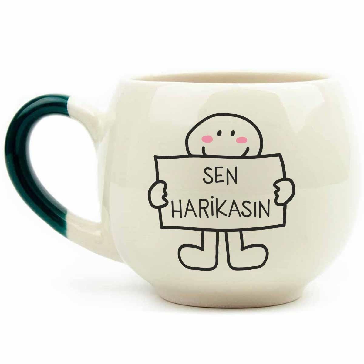 Sen Harikasın Krem Parlak Balon Kupa - Hediye Seramik Kupa