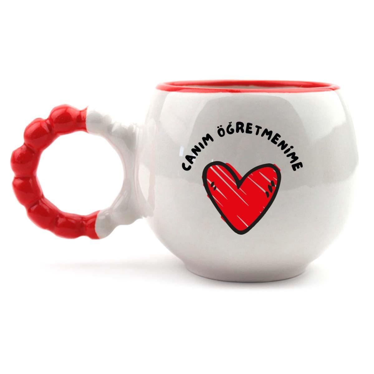 Canım Öğretmenime  El Yapımı Krem Parlak Puf Kupa - El İşçiliği Hediyelik Kupa Bardak Mug