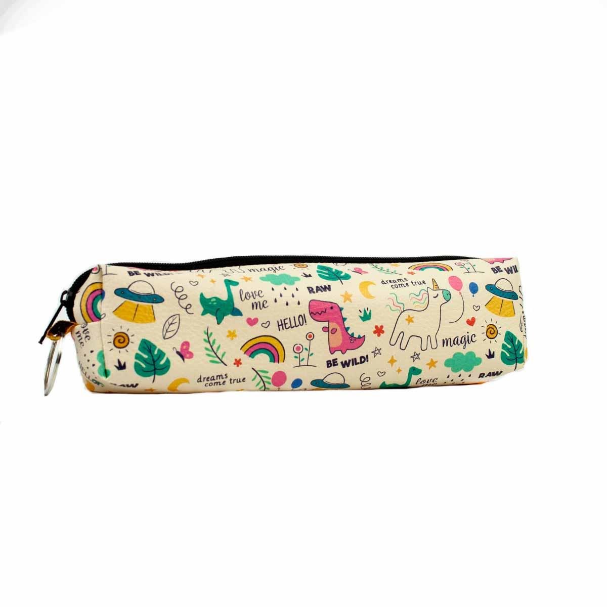 Renkli Dinazorlar Tasarımlı Fermuarlı Kalemlik - Tek Bölmeli Kalemlik Kalem Kutusu
