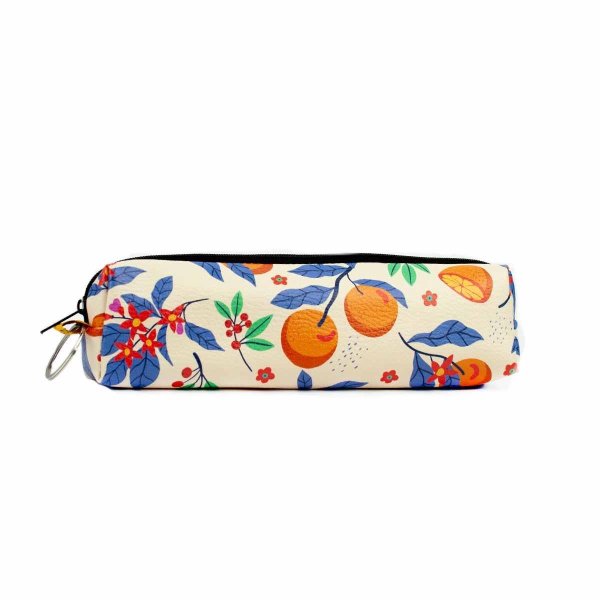 Taze Portakallı Desen Fermuarlı Kalemlik - Tek Bölmeli Kalemlik Kalem Kutusu