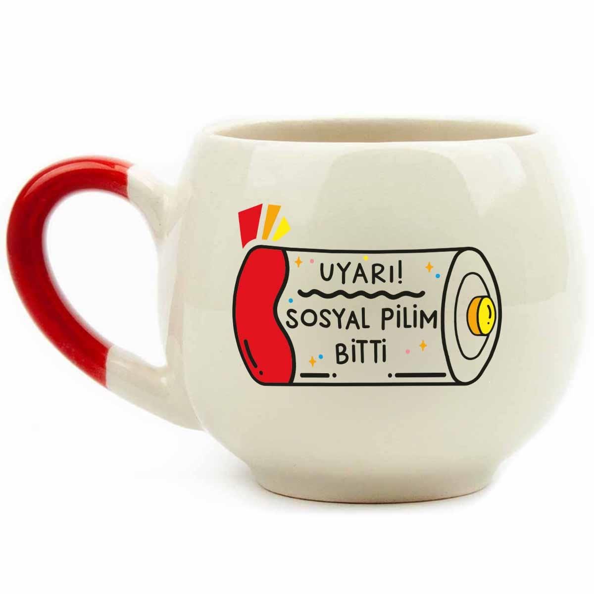 Uyarı! Sosyal Pilim Bitti Krem Parlak Balon Kupa - Hediyelik Kupa Fincan Mug