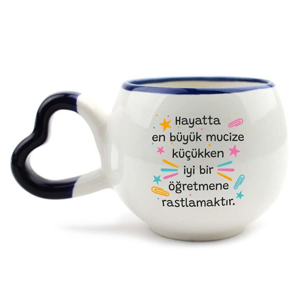 Hayatta En Büyük Mucize Küçükken İyi Bir Öğretmene Rastlamaktır El Yapımı Krem Parlak Amour Kupa - El İşçiliği Hediyelik Kupa Bardak Mug