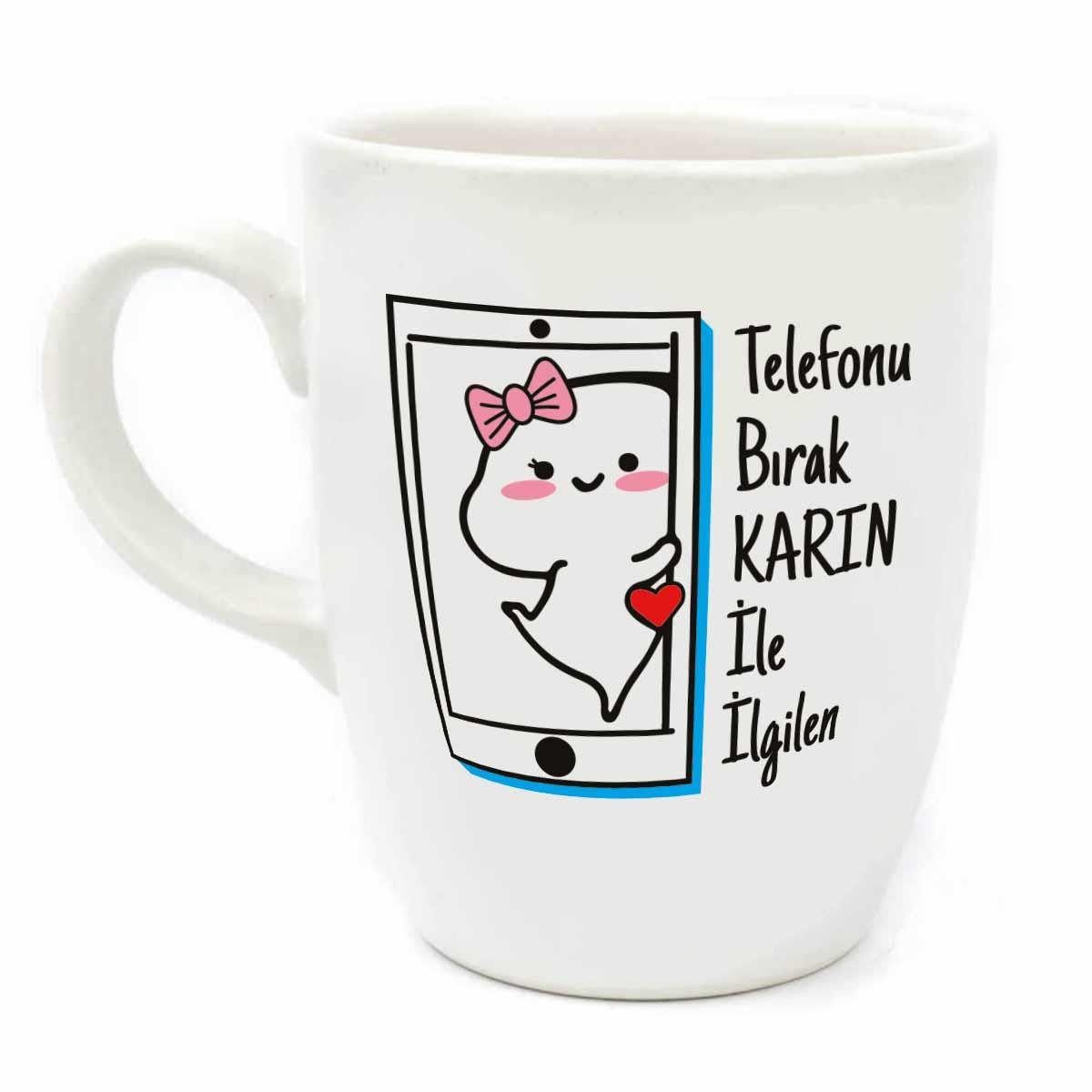 Telefonu Bırak Karın İle İlgilen! Krem Oval Kupa - Hediyelik Kupa Fincan Mug