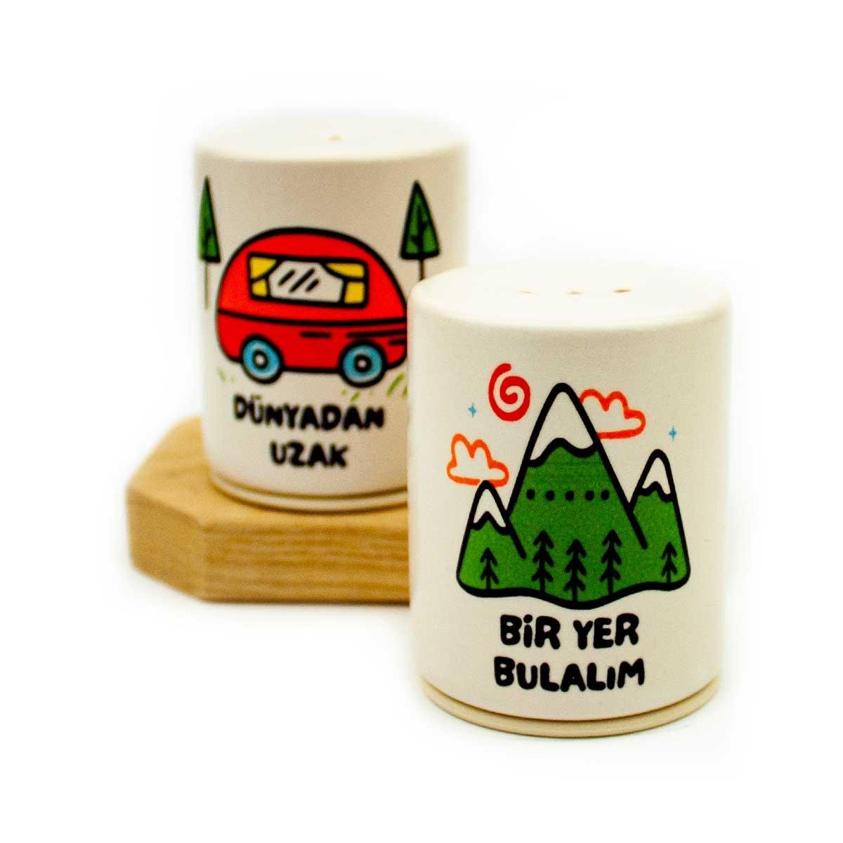 Bir Yer Bulalım Dünyadan Uzak Seramik 2'li Tuzluk Biberlik Seti