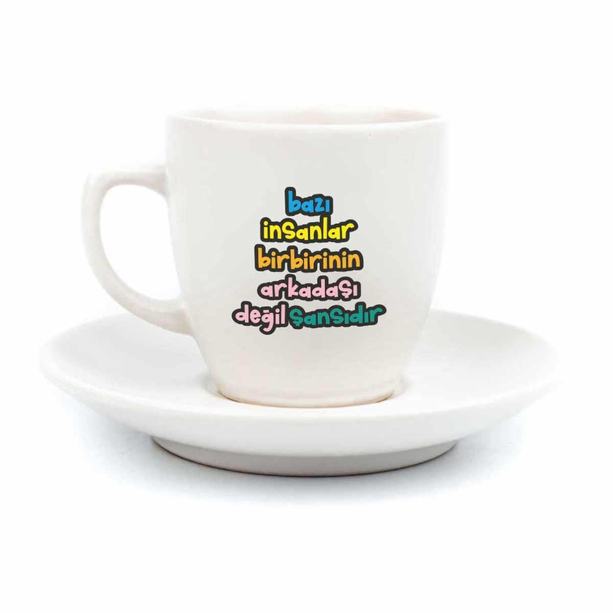 Bazı İnsanlar Birbirinin Arkadaşı Değil Şansıdır Krem Türk Kahvesi Fincanı - Hediye Seramik Türk Kahvesi Fincanı