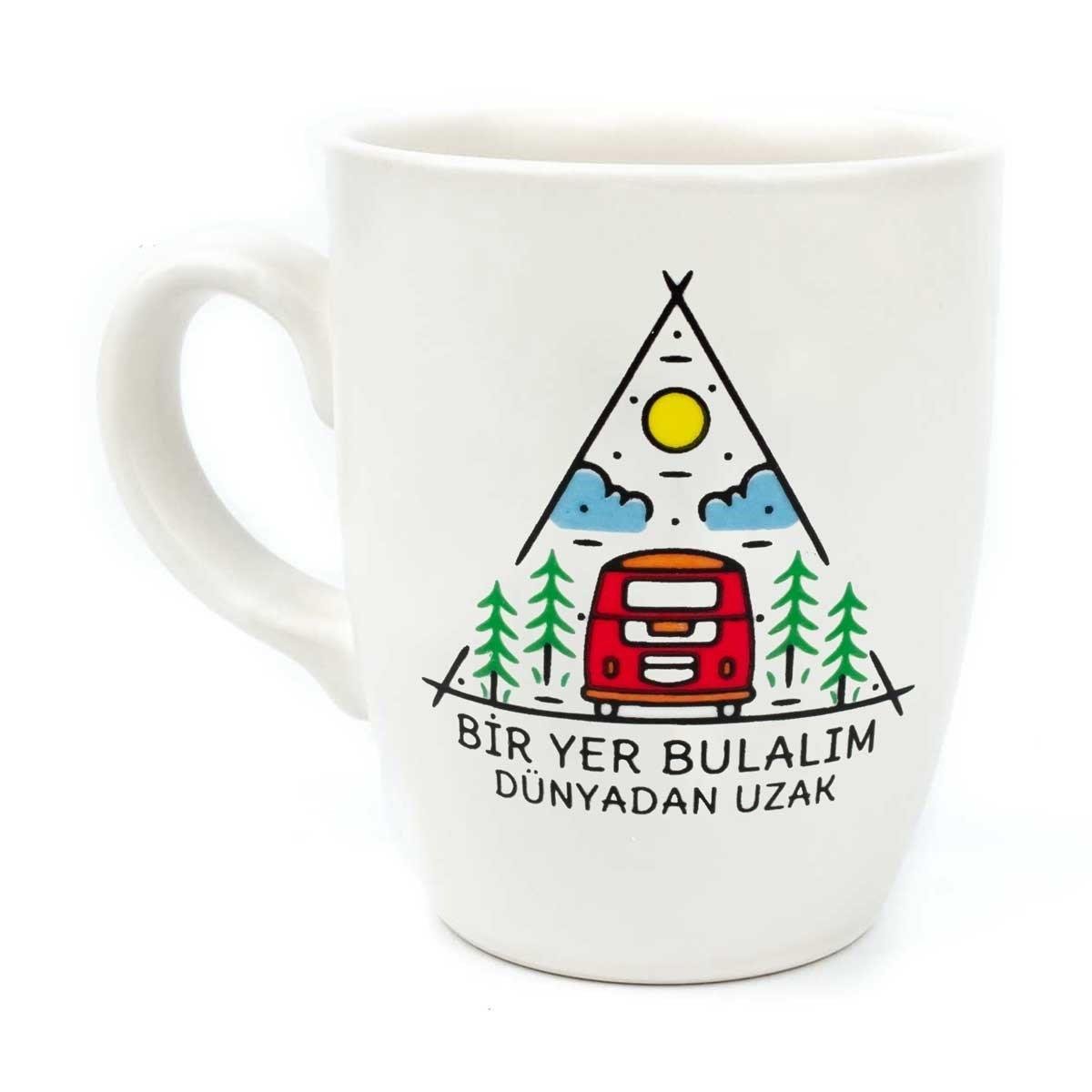 Bir Yer Bulalım Dünyadan Uzak 02 Krem Oval Kupa - Hediye Seramik Kupa