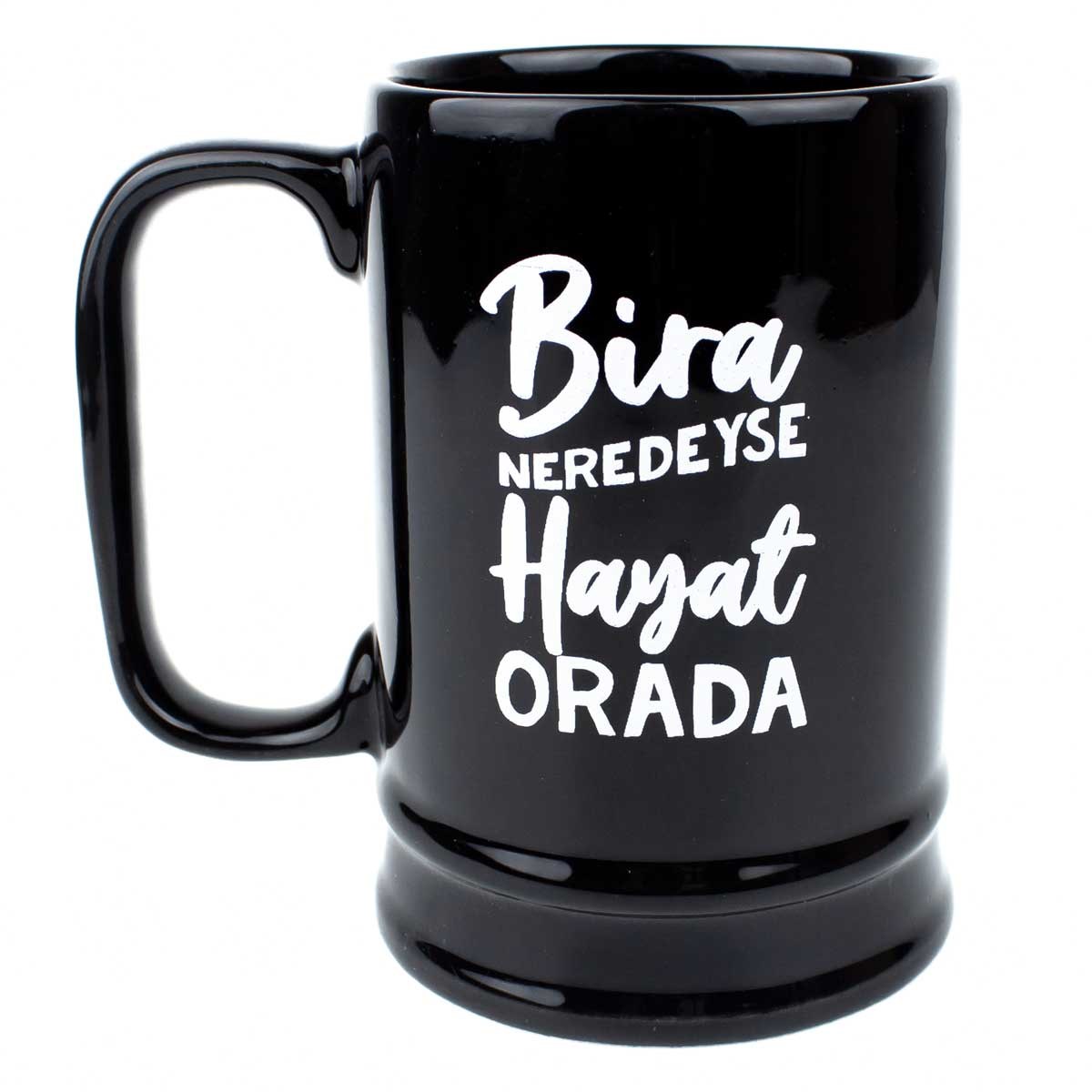 Bira Neredeyse Hayat Orada Siyah Parlak Bira Bardağı (BIRA09)