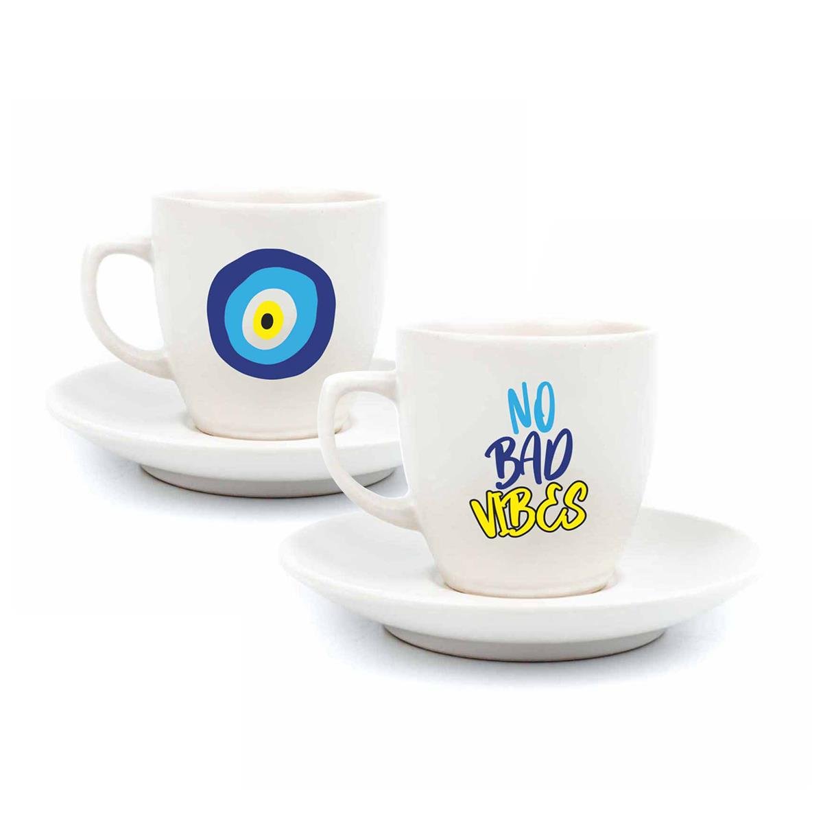 No Bad Wibes 2 Kişilik 4 Parça Krem Türk Kahvesi Fincan Seti - Hediyelik Kahve Fincanı Seti