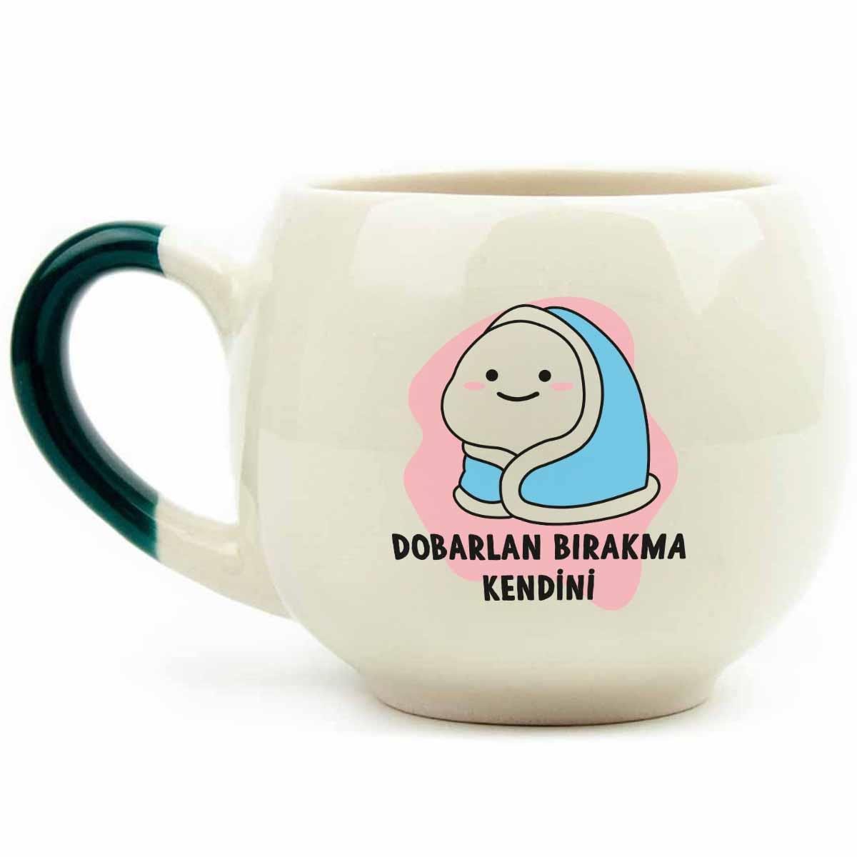Dobarlan Bırakma Kendini Krem Parlak Balon Kupa (Yeşil Kulp) - Hediye Seramik Kupa