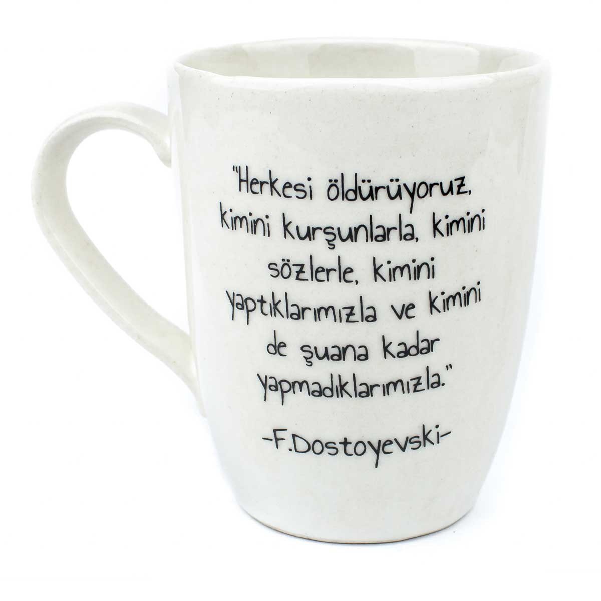 F. Dostoyevski: Herkesi Öldürüyoruz, Kimini Kurşunlarla, Kimini Sözlerle... Bej Parlak Oval Kupa - Hediye Seramik Kupa (KUED009)