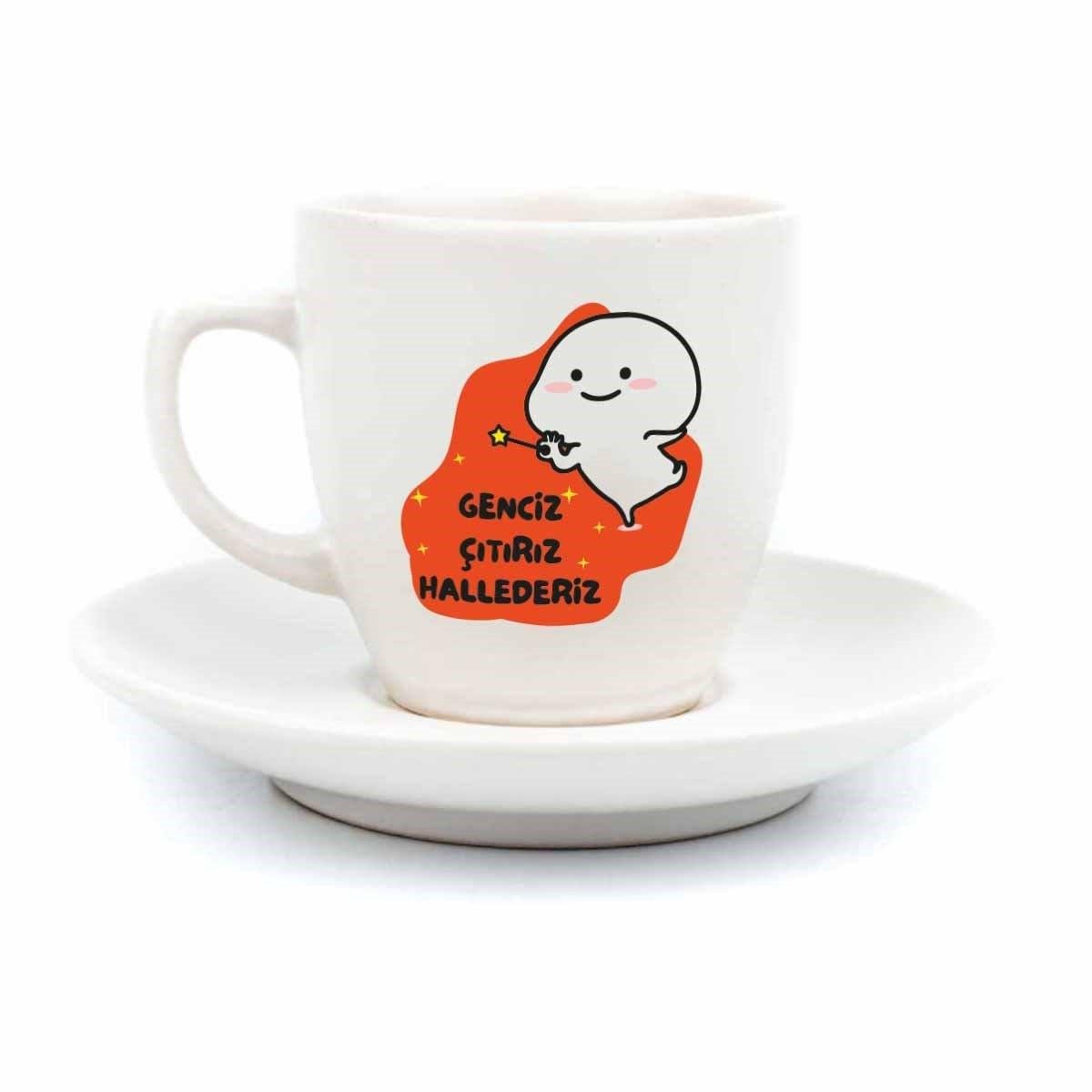 Genciz Çıtırız Hallederiz Krem Türk Kahvesi Fincanı - Hediye Seramik Türk Kahvesi Fincanı