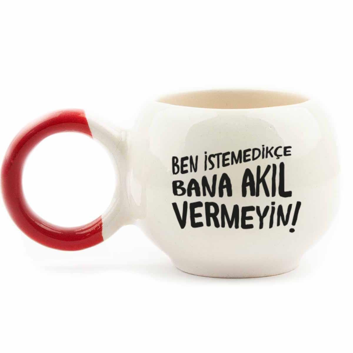 Ben İstemedikçe Bana Akıl Vermeyin! El Yapımı Krem Parlak Baloncuk Fincan - Hediyelik Seramik Fincan