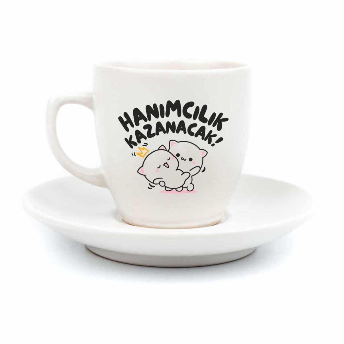 Hanımcılık Kazanacak Krem Türk Kahvesi Fincanı - Hediye Seramik Türk Kahvesi Fincanı