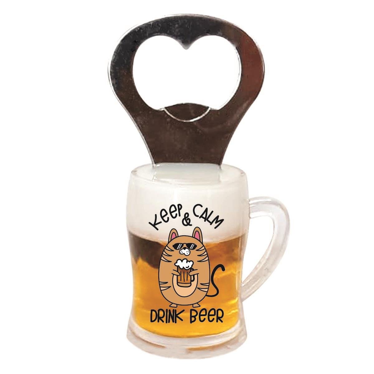 Keep Calm & Drink Beer Dekoratif Açacak Magnet - Şişe Açacağı Kapak Açacak