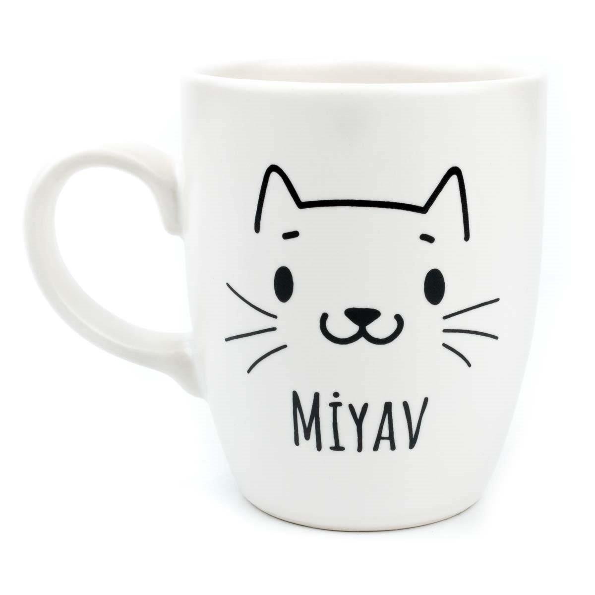 Miyav Krem Oval Kupa - Hediye Seramik Kupa