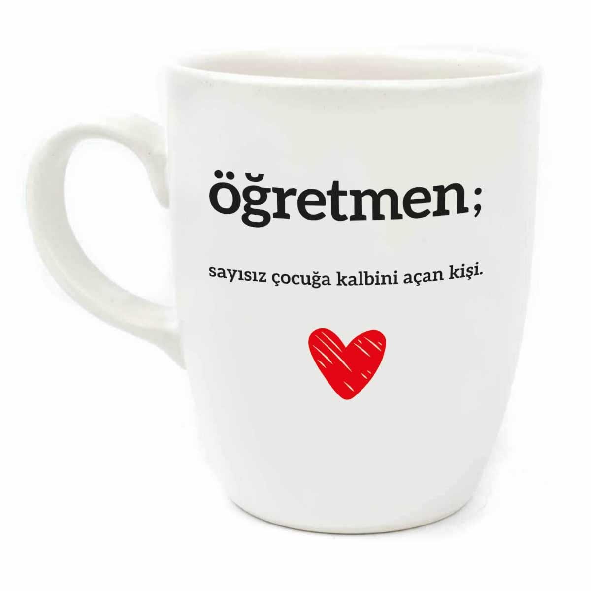Öğretmen; Sayısız Çocuğa Kalbini Açan Kişi. Krem Oval Kupa - Hediyelik Kupa Fincan Mug