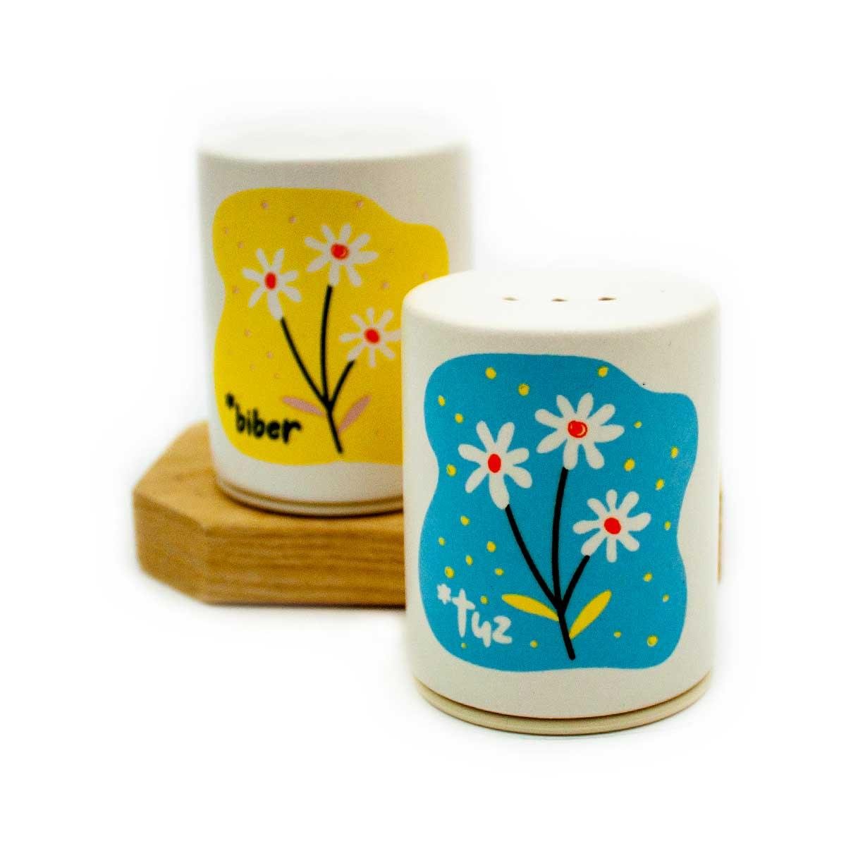 Renkli Papatyalar Seramik 2'li Tuzluk Biberlik Seti