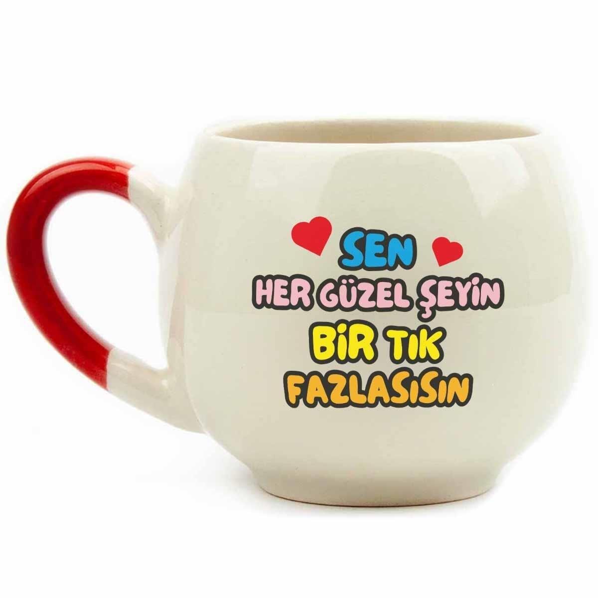 Sen Her Güzel Şeyin Bir Tık Fazlasısın Krem Parlak Balon Kupa (Kırmızı Kulp) - Hediye Seramik Kupa