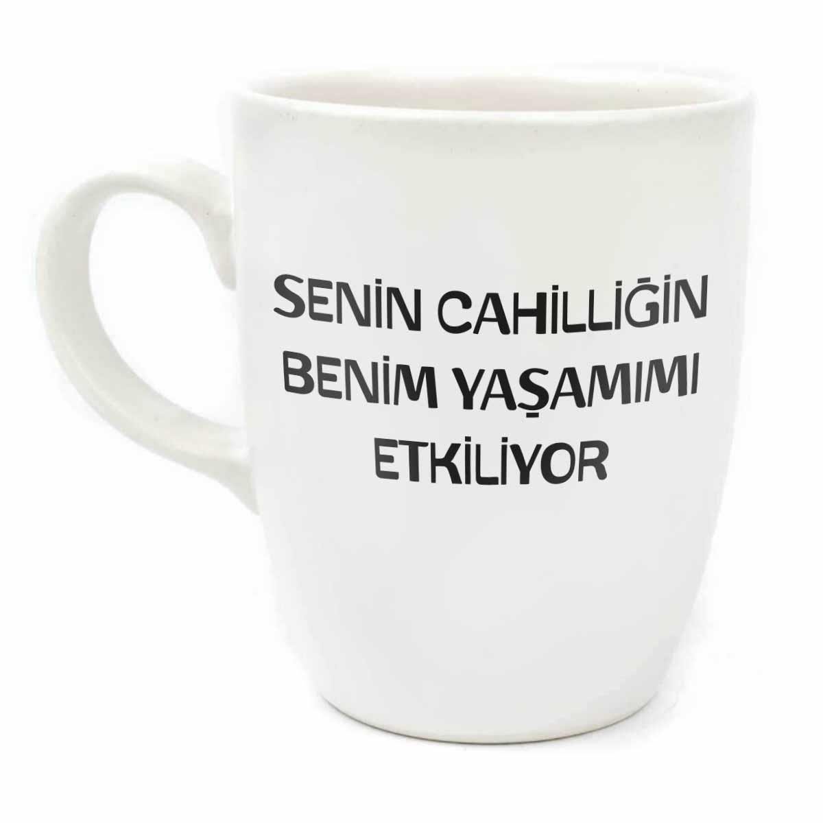 Senin Cahilliğin Benim Yaşamımı Etkiliyor Krem Oval Kupa - Hediye Seramik Kupa