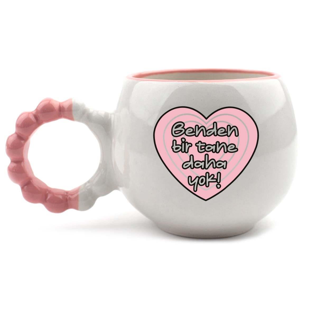 Benden Bir Tane Daha Yok! El Yapımı Krem Parlak Puf Kupa - El İşçiliği Hediyelik Kupa Bardak Mug